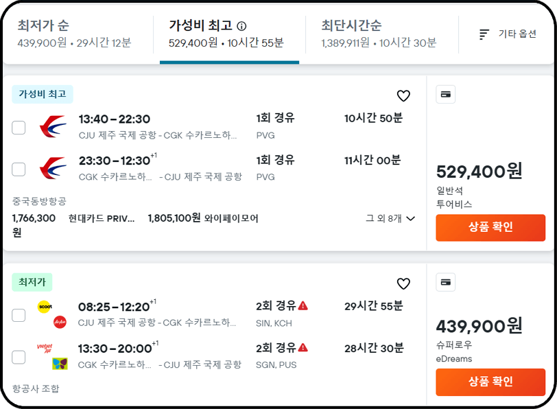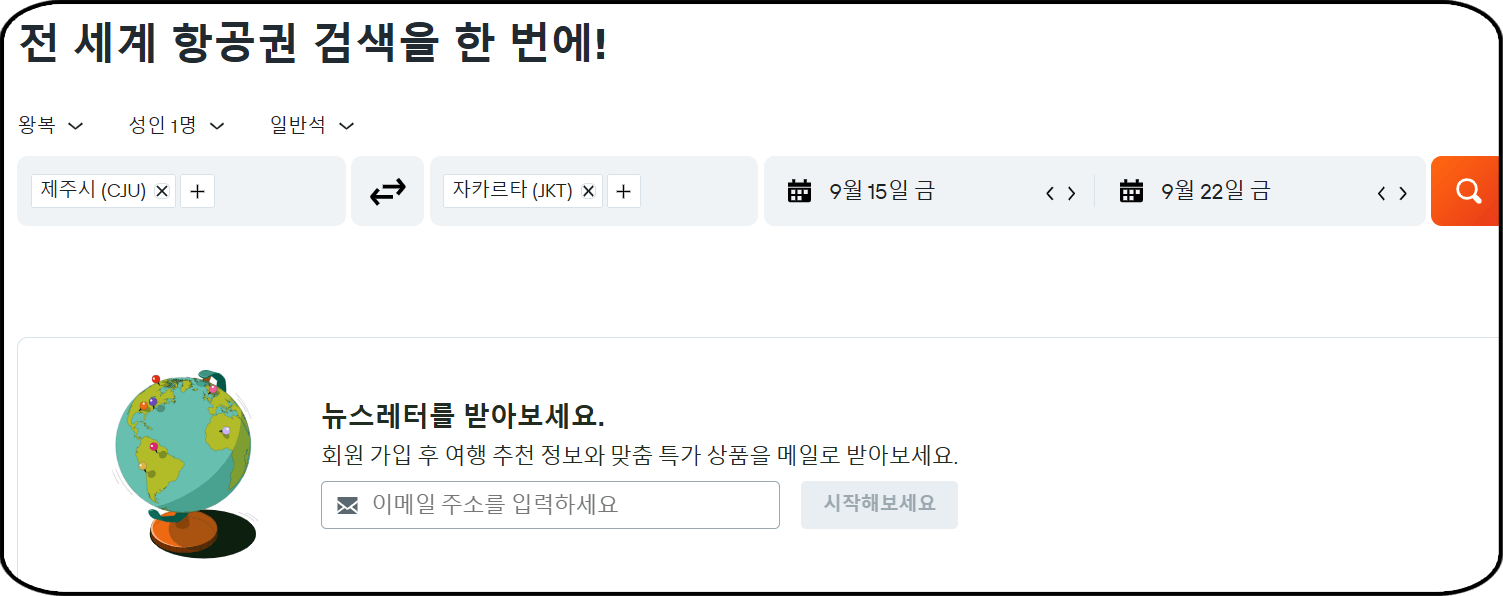 여행에 최적화된 검색 엔진을 바탕으로 전 세계 항공사와 약 1,200개 여행 업체의 데이터를 수집하여 가격 정보를 제공하기 때문에, 제시되는 항공권 가격 정보의 신뢰도가 높은 편이에요. 항공권 검색 시 최저가, 최단여행시간에 따른 항공권 가격 정보를 제공하며 24시간 운영되는 홈페이지 문의하기를 통해 항공권 관련 문의사항을 해결할 수 있어요🙋♂️